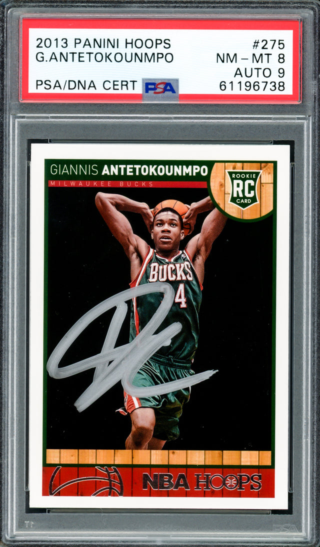 Giannis Antetokounmpo Autographed 2013 Panini Hoops Rookie Card #275 Milwaukee Bucks PSA 8 Auto Grade Mint 9 PSA/DNA #61196738