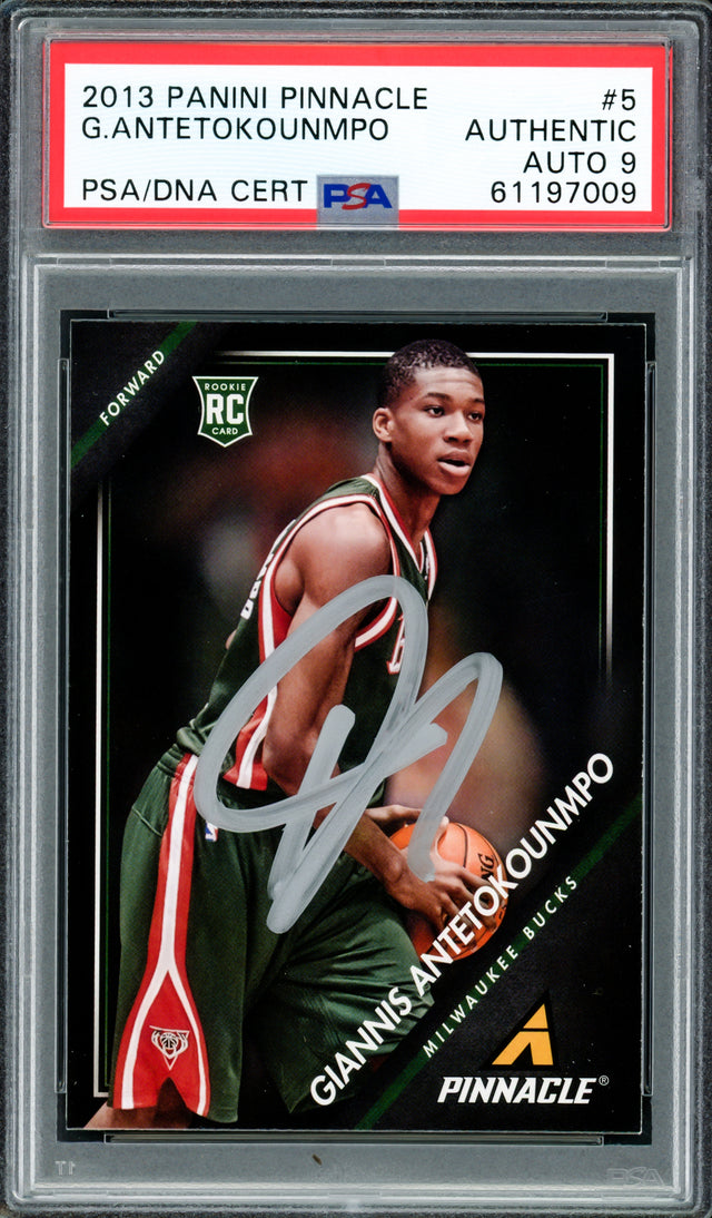 Giannis Antetokounmpo Autographed 2013 Panini Pinnacle Rookie Card #5 Milwaukee Bucks Auto Grade Mint 9 PSA/DNA #61197009