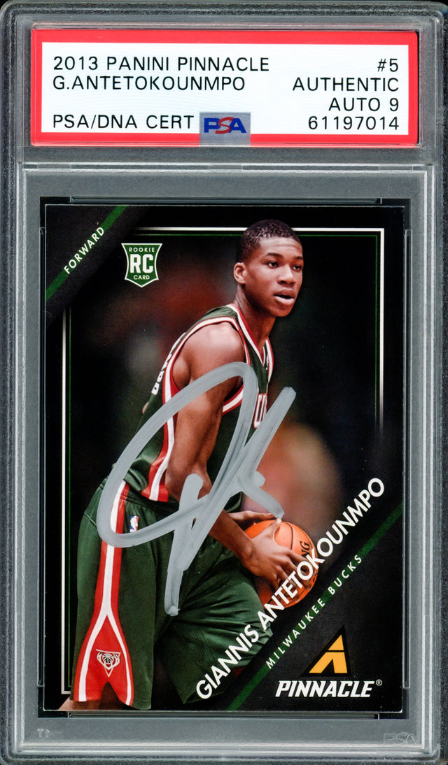 Giannis Antetokounmpo Autographed 2013 Panini Pinnacle Rookie Card #5 Milwaukee Bucks Auto Grade Mint 9 PSA/DNA #61197014