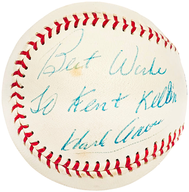 Own a piece of baseball history with this Official Wilson Major League Baseball hand-signed by the legendary Hank Aaron. A true collector's item, this ball features the rare vintage signature of the Hall of Famer, personalized with the inscription "Best Wishes To Kent."