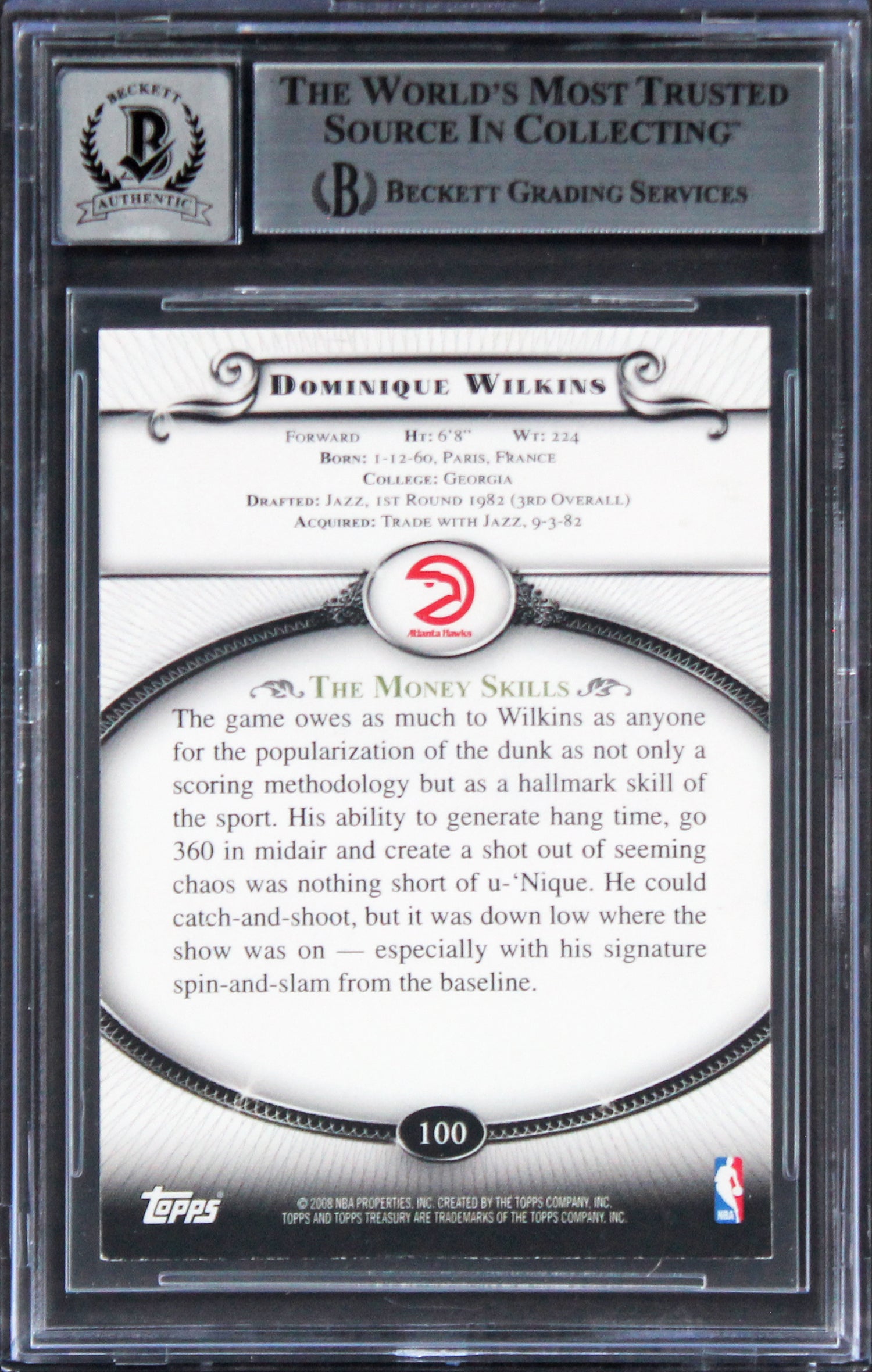 Hawks Dominique Wilkins Signed 2008 Topps Treasury #100 Card Auto 10 BAS Slabbed