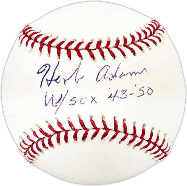 Herb Adams Autographed Official MLB Baseball Chicago White Sox "W Sox '48-'50" Beckett BAS QR #BL93598
