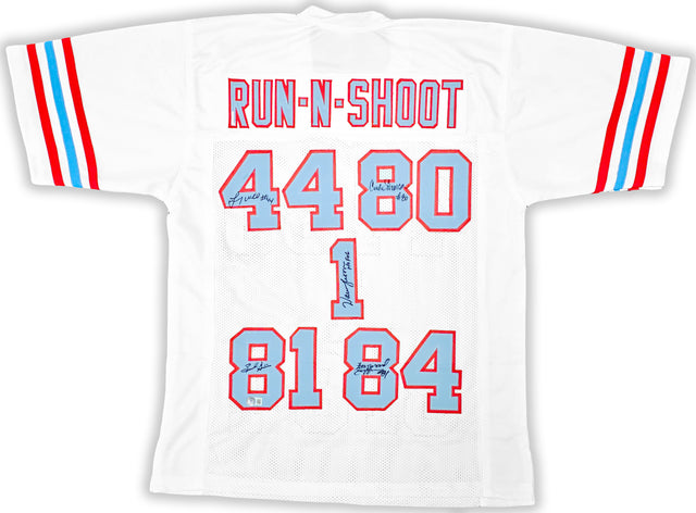 Houston Oilers Run & Shoot Autographed White Jersey With 5 Signatures Including Warren Moon Beckett BAS Witness Stock #220385