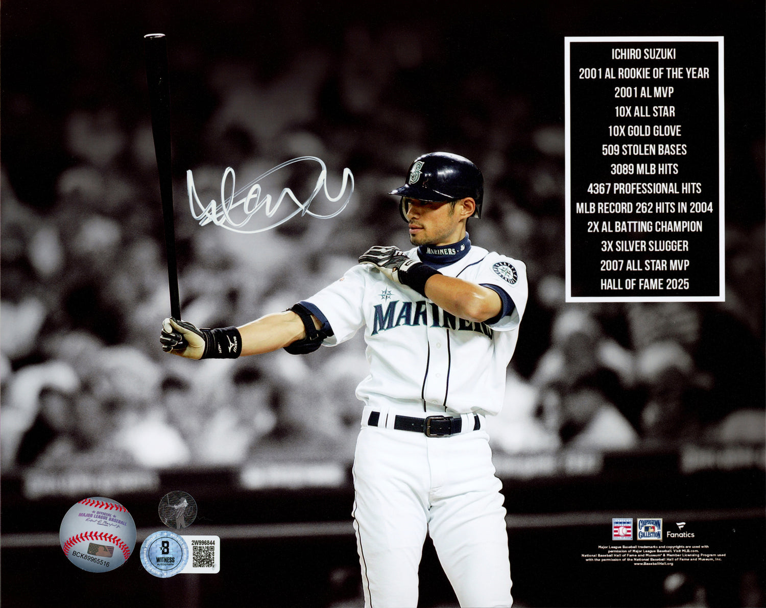 Ichiro Suzuki Autographed 8x10 Photo Seattle Mariners Stats IS Holo & Beckett BAS Witness Stock #246188