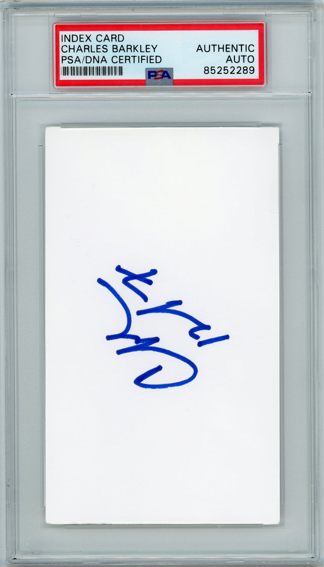 Own a piece of basketball history with this Charles Barkley Signed Index Card, authenticated by PSA/DNA. A true collector’s item, this sports trading card features the hand-signed autograph of Hall of Fame legend Charles Barkley, one of the most dominant forwards in NBA history. Whether you're a devoted fan or a memorabilia investor, this authenticated signature is a valuable addition to any collection.