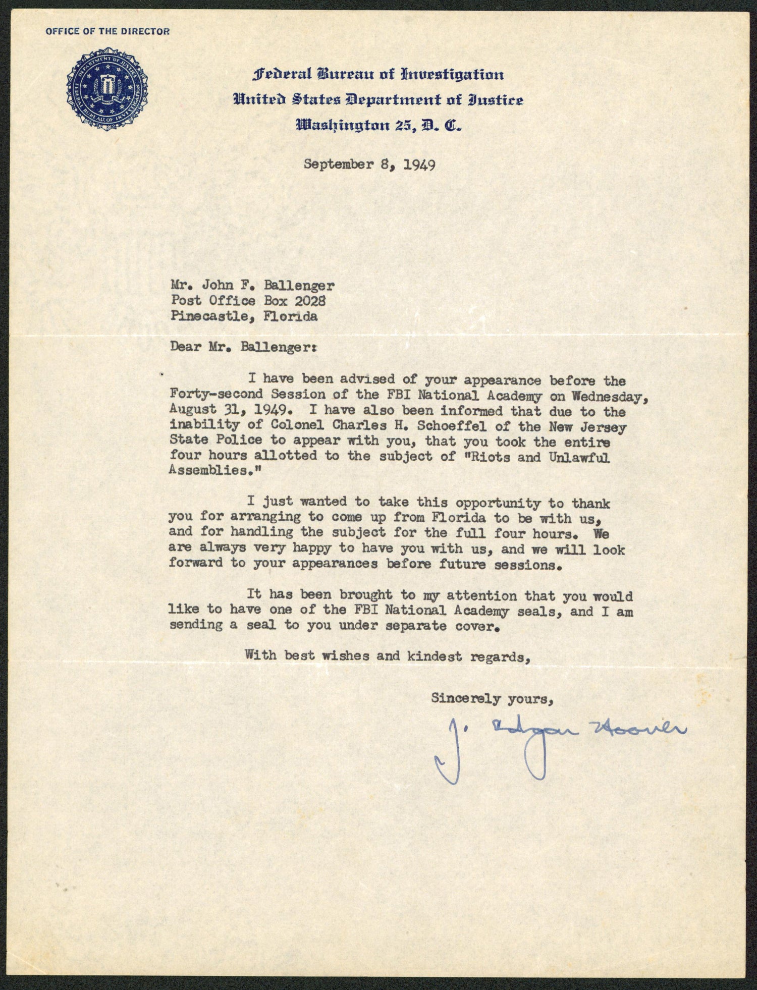 • Dated September 8, 1949 – A historical document from a pivotal time in U.S. law enforcement.