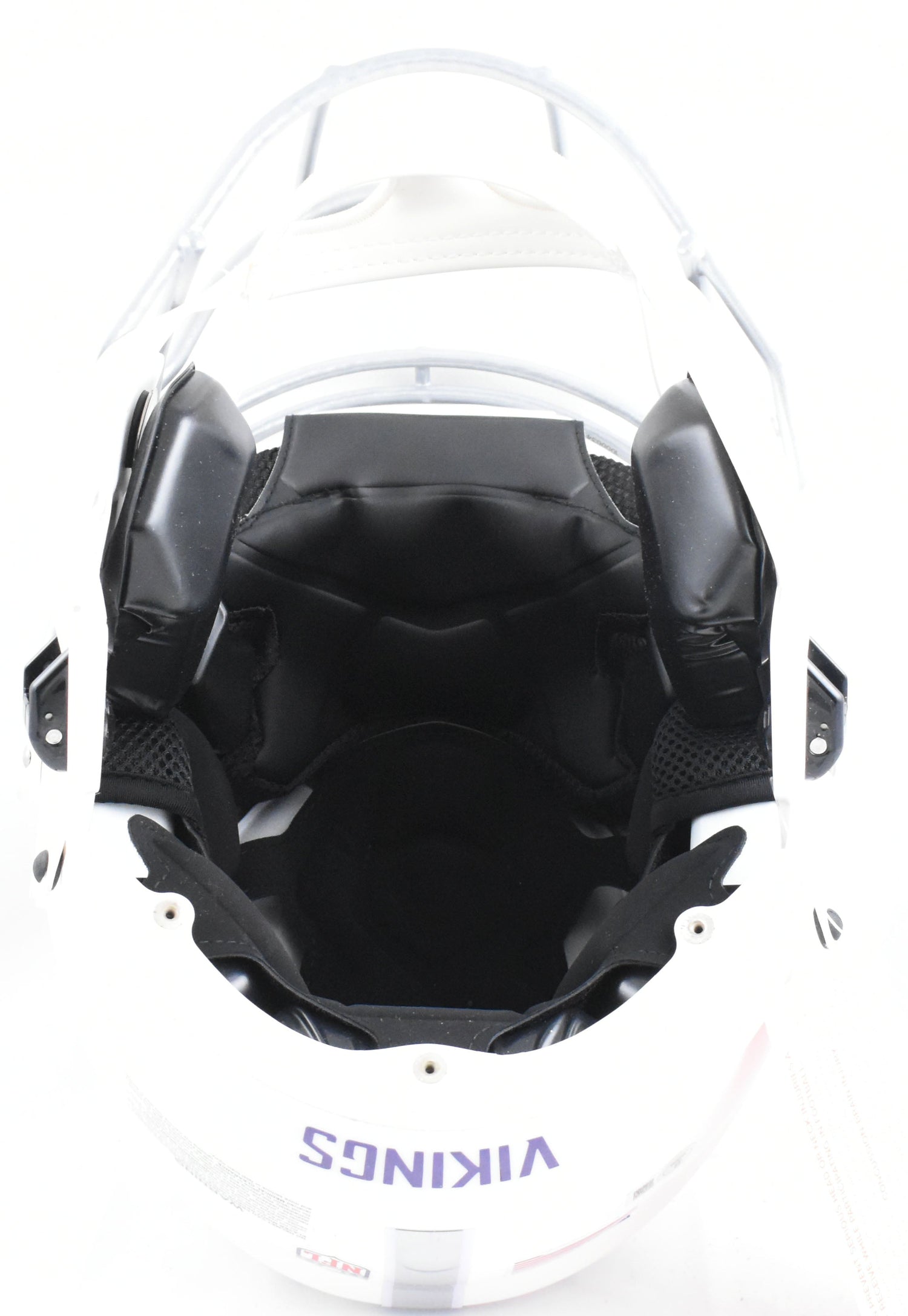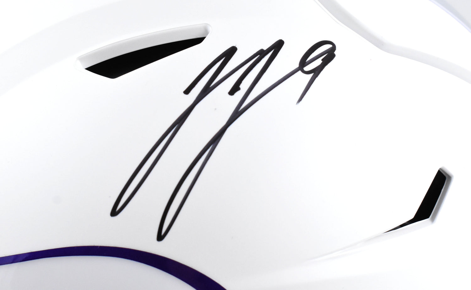 Showcase your Vikings pride and celebrate the future of Minnesota football with this JJ McCarthy autographed helmet. Order today and own an authenticated piece of NFL history! Autograph location may vary.