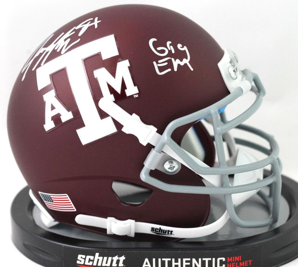 This Jace Sternberger autographed Texas A&M Aggies Schutt Mini Football Helmet is a must-have for any devoted Aggies fan or sports memorabilia collector. Personally signed by Sternberger, this collectible helmet features the iconic "Gig 'Em" inscription, celebrating the proud Texas A&M tradition.