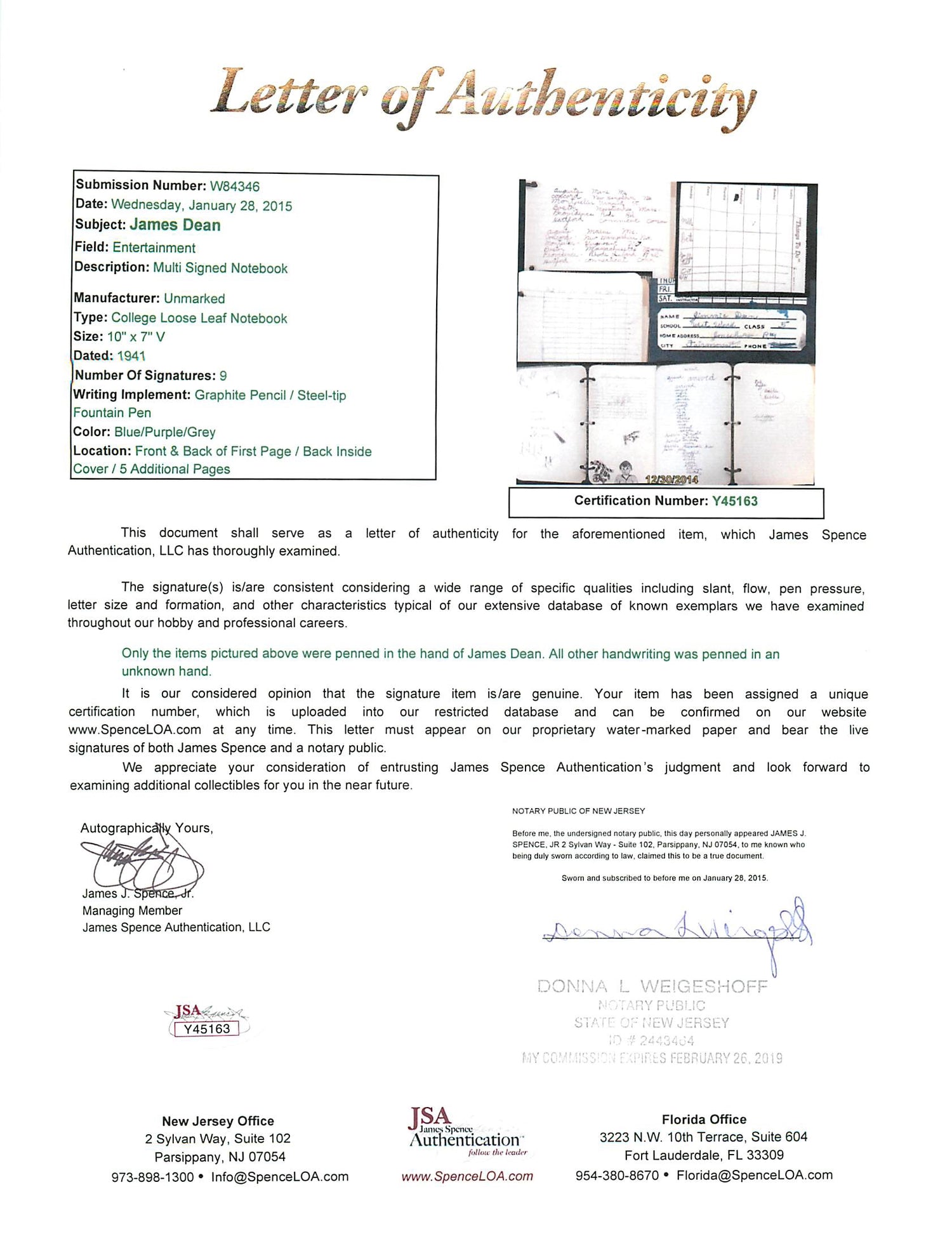 James Dean 1.5x2 Handwriting Sample from 5th Grade Notebook JSA Slabbed #8947582