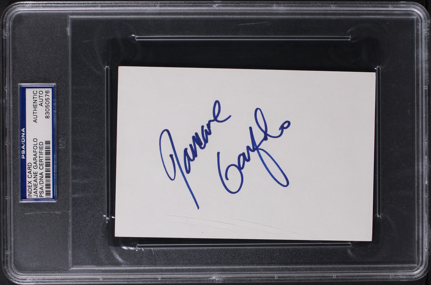 Own a unique piece of pop culture history with this Janeane Garofalo Autographed 4x6 Index Card, personally signed by the beloved actress and comedian known for her role in Mystery Men. This rare collectible is 100% authentic, slabbed, and professionally authenticated by PSA/DNA, ensuring its value and legitimacy.