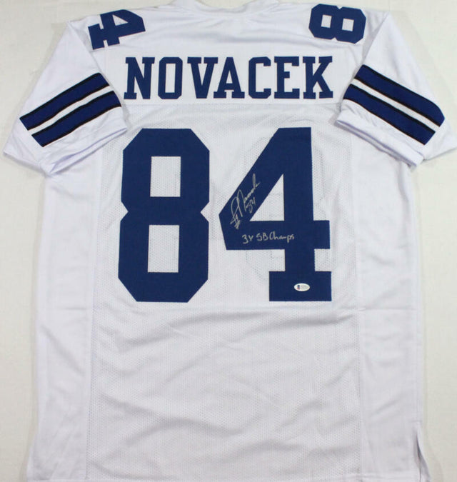 Own a piece of football history with this hand-signed Jay Novacek custom jersey, inscribed with "3X SB Champs" to commemorate his Super Bowl victories. This jersey is a must-have for collectors and Cowboys fans alike.