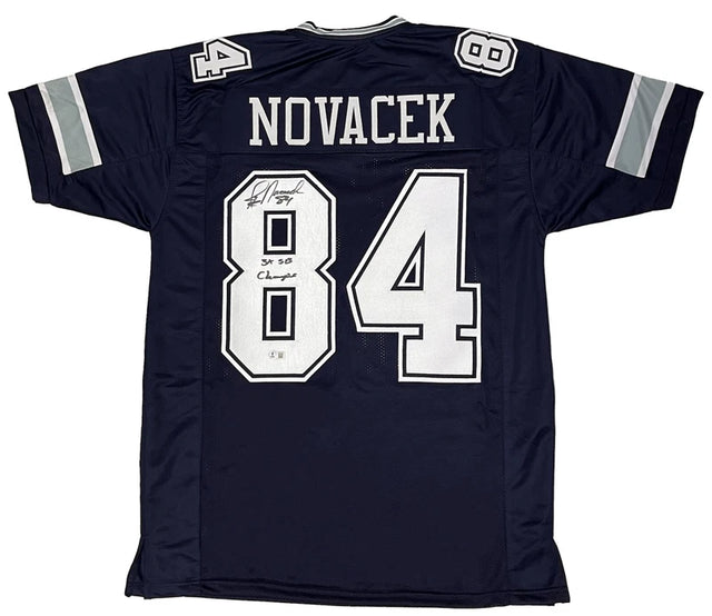 Jay Novacek/Inscribed "3x SB Champs" #84 Navy Custom Jersey Beckett Witnessed