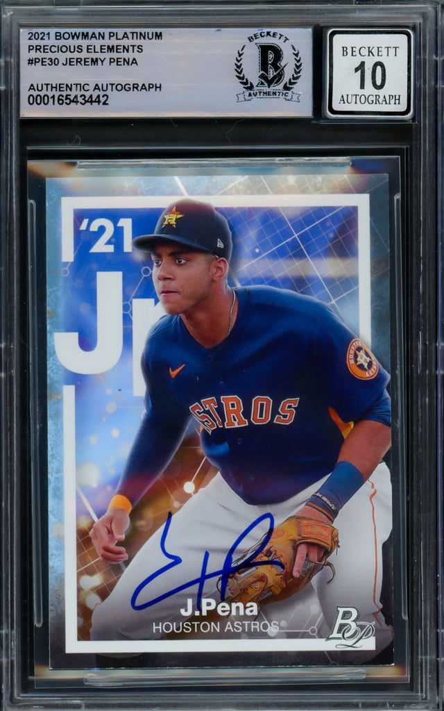 Jeremy Pena Autographed 2021 Bowman Platinum Rookie Card #PE-30 Houston Astros Auto Grade Gem Mint 10 Beckett BAS #16543442