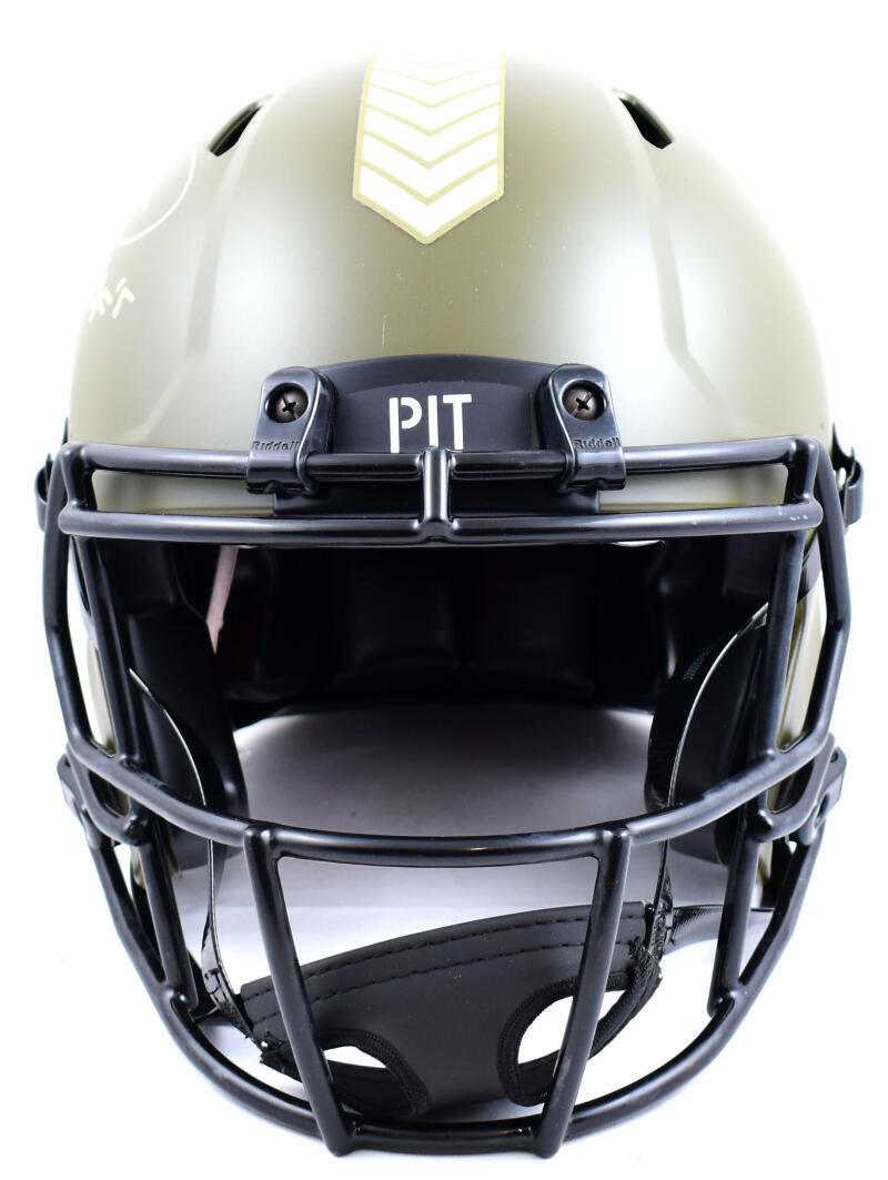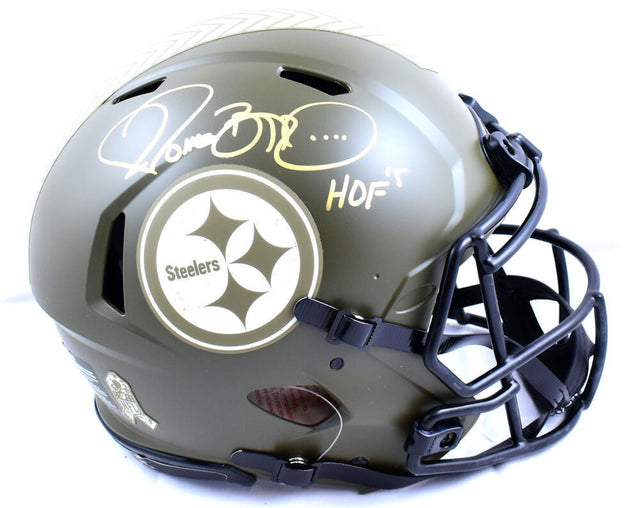 Own a piece of Pittsburgh Steelers history with this hand-signed Jerome Bettis Full-Size Salute to Service Speed Authentic Helmet by Riddell. A must-have for devoted Steelers fans and memorabilia collectors, this helmet is inscribed with "HOF", celebrating Bettis' induction into the Pro Football Hall of Fame.