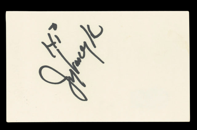 This Jerry Van Dyke autographed 3x5 index card is a must-have for fans of classic television and memorabilia collectors. Best known for his role on Coach, Van Dyke’s signature adds a nostalgic touch to any collection. This particular piece includes the unique inscription "Hi" in addition to his autograph, making it even more special.
