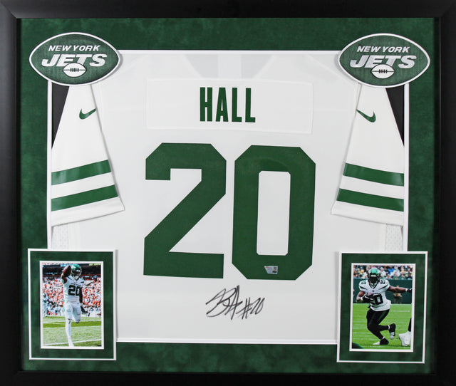 Own a piece of NFL history with this Autographed White Nike Game Framed Jersey, personally signed by Breece Hall of the New York Jets. This high-quality collectible is authenticated by Fanatics with a numbered hologram for guaranteed authenticity. A must-have for serious Jets fans and memorabilia collectors, this item has been professionally framed and makes for an incredible display piece.