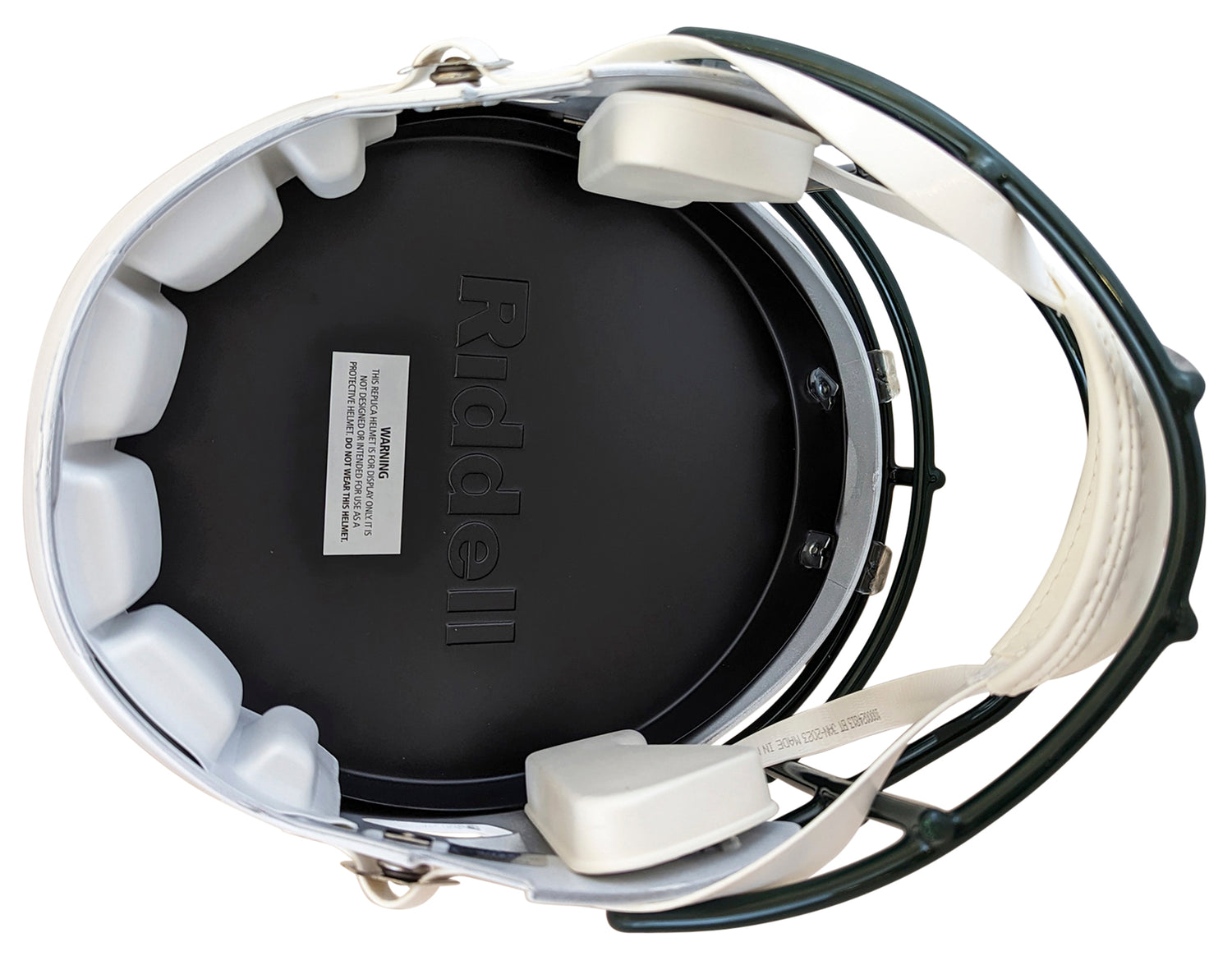 Own a piece of New York Jets history with this Autographed 1998-2018 Throwback Full-Size Speed Replica Helmet, personally signed by Darrelle Revis and inscribed with "Revis Island." A legendary cornerback and Hall of Famer, Revis dominated the NFL and earned a reputation for shutting down the league’s best receivers. This collectible is 100% authentic and comes with a Beckett Authentication Services (BAS) hologram for verification, ensuring peace of mind for serious collectors.