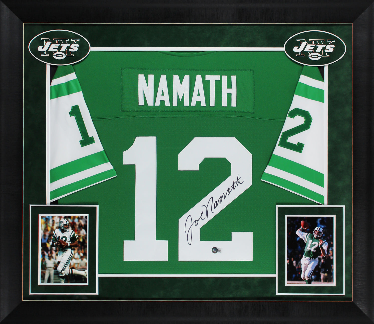 Jets Joe Namath Authentic Signed Green M&N Framed Jersey BAS Witnessed