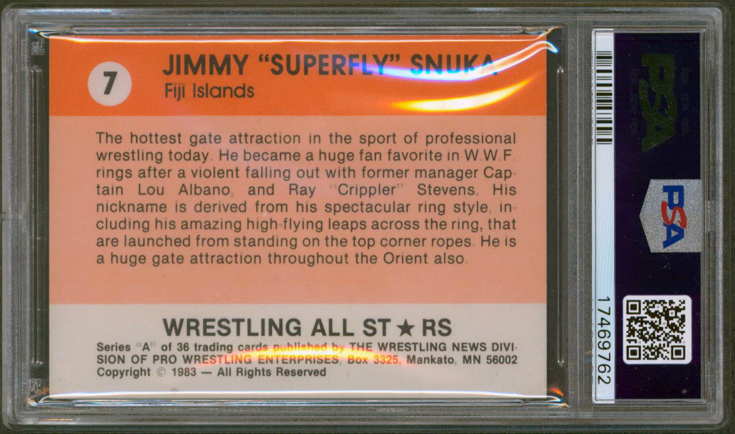 Jimmy Snuka Authentic Signed 1983 Wrestling All-Stars #7 Card PSA/DNA Slabbed