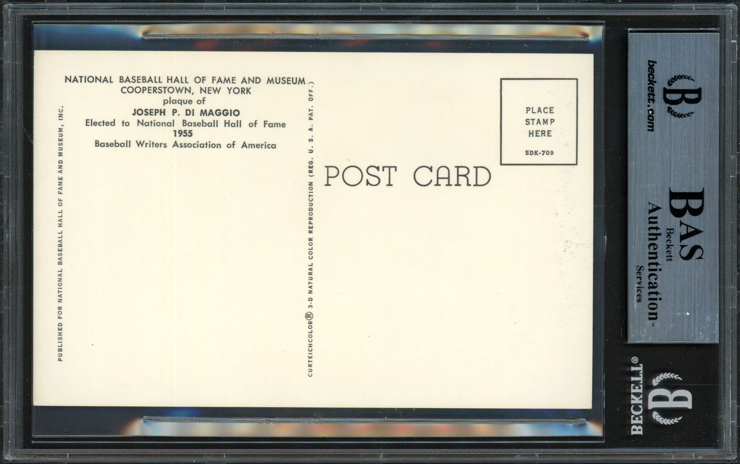 Joe DiMaggio Autographed Hall of Fame HOF Plaque Postcard New York Yankees Beckett BAS #12059074