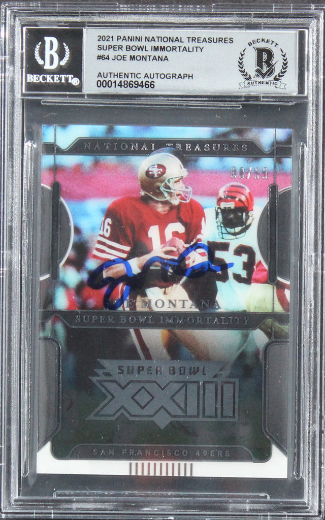 Joe Montana Signed 2021 Panini National Treasures #64 8/55 Card Auto 10 BAS Slab is backordered and will ship as soon as it is back in stock.