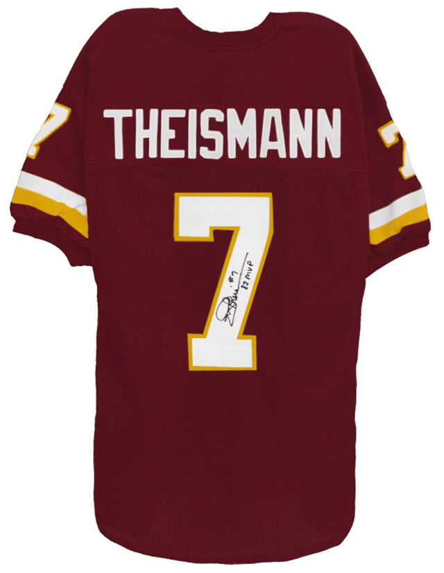 Own a piece of football history with this Joe Theismann signed red custom throwback jersey, featuring a rare '83 MVP' inscription. As the 1983 NFL MVP and Super Bowl XVII Champion, Theismann left an indelible mark on the game, making this autographed jersey a must-have for collectors and Washington football fans.