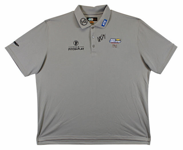 Own a piece of golf history with this Autographed Match-Worn Grey Team Pitch & Play Mark Christopher Chevy Rock Bottom Golf Trump Polo Shirt, personally signed by legendary golfer John Daly. This rare collector's item was match-worn by Daly and originates directly from his personal collection, making it a must-have for serious golf enthusiasts and memorabilia collectors.