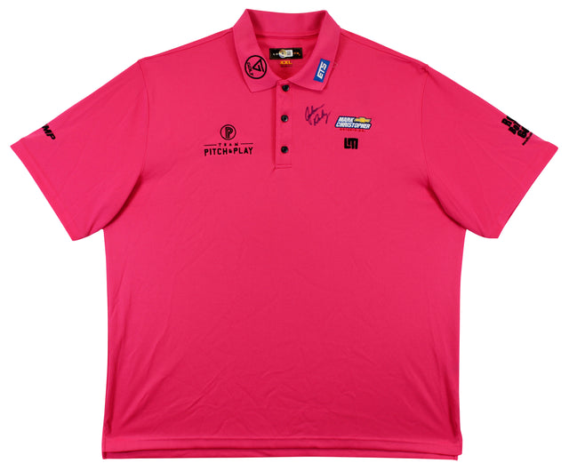 Own a piece of golf history with this Autographed Match Worn Pink Loudmouth Pitch & Play Mark Christopher National Core Trump ETS Rock Bottom Golf Polo Shirt, personally signed by legendary golfer John Daly. This one-of-a-kind collectible has been match-worn by John Daly himself and originates from his personal collection, making it a must-have for dedicated fans and memorabilia collectors.