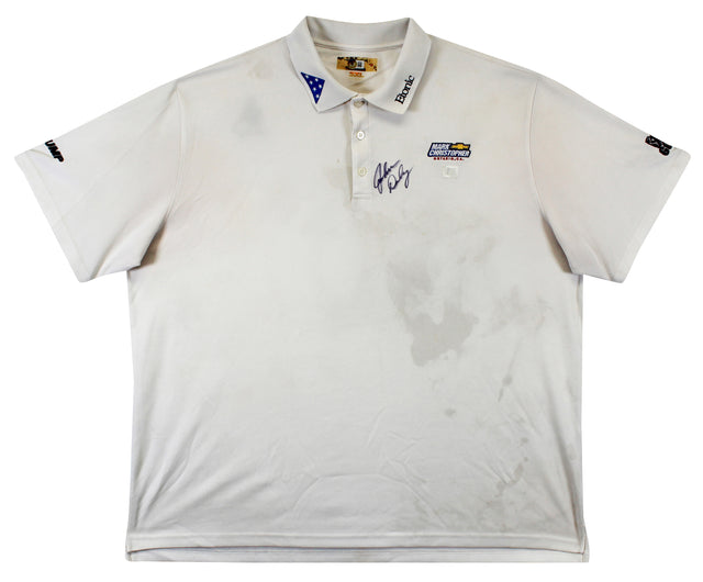 Own a piece of golf history with this Autographed Match Worn White Loudmouth Mark Christopher Etonic Trump Rock Bottom Golf Polo Shirt, personally signed by golf legend John Daly. This one-of-a-kind collectible is more than just memorabilia; it’s a piece of Daly’s personal collection, worn during competition and authenticated for provenance.