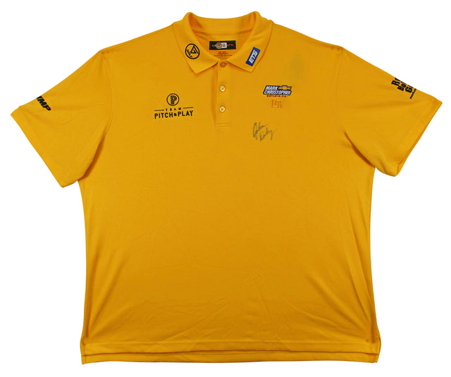 This Autographed Match-Worn Yellow Team Pitch & Play Mark Christopher Chevy Rock Bottom Golf Trump Polo Shirt has been personally signed by golf legend John Daly and is a rare collector’s item for golf fans and memorabilia enthusiasts. This authentic match-worn polo is a unique piece from Daly’s personal collection, making it an exceptional addition for serious collectors.
