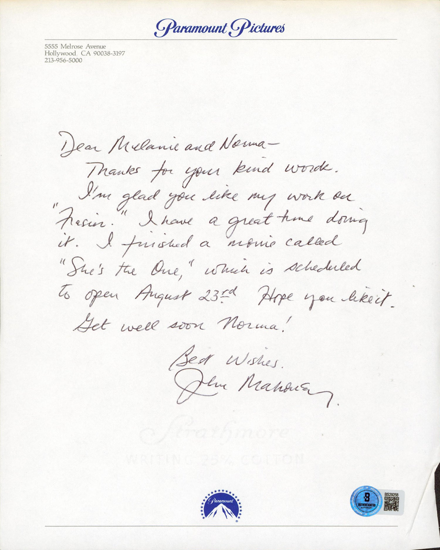 - Authentic 8.5x11 handwritten letter signed by John Mahoney of the iconic show Frasier