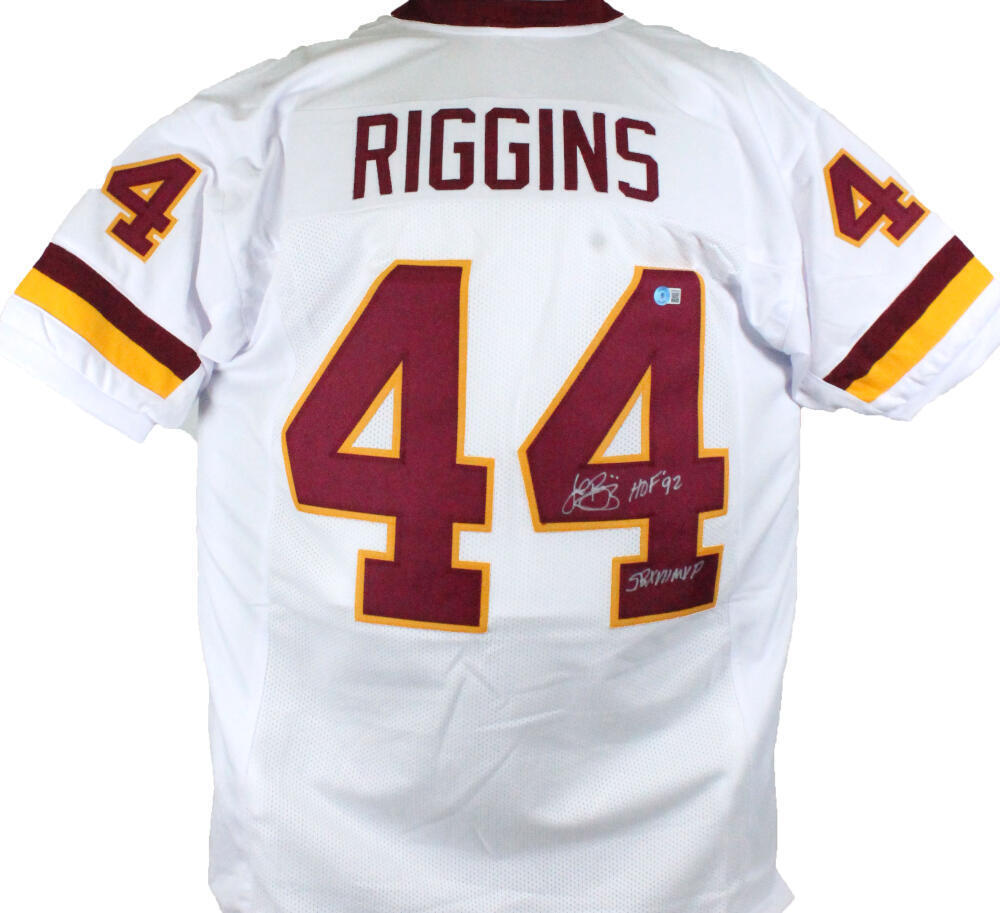 Own a piece of football history with this John Riggins autographed custom jersey, featuring his hand-signed signature along with his HOF & Super Bowl MVP inscriptions. This is a custom-made, authentic-style jersey with stitched letters and numbers—not an official NFL jersey and contains no logos, tags, or emblems.