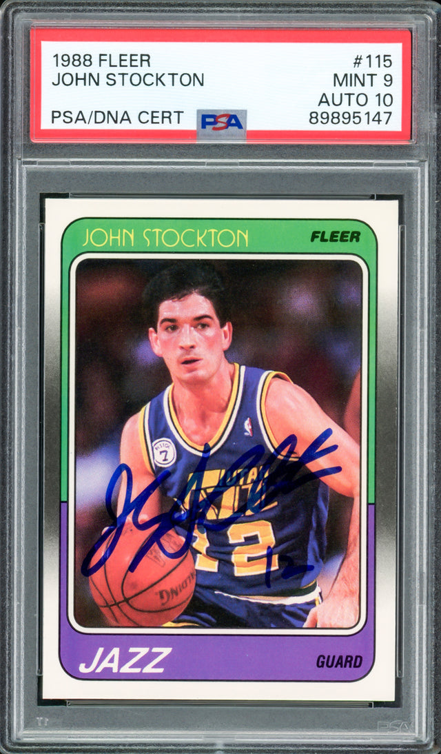 John Stockton Autographed 1988 Fleer Rookie Card #115 Utah Jazz PSA 9 Auto Grade Gem Mint 10 PSA/DNA #89895147
