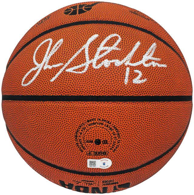 John Stockton Autographed Composite Leather Utah Jazz Logo Basketball Beckett BAS Witness Stock #224366 is backordered and will ship as soon as it is back in stock.