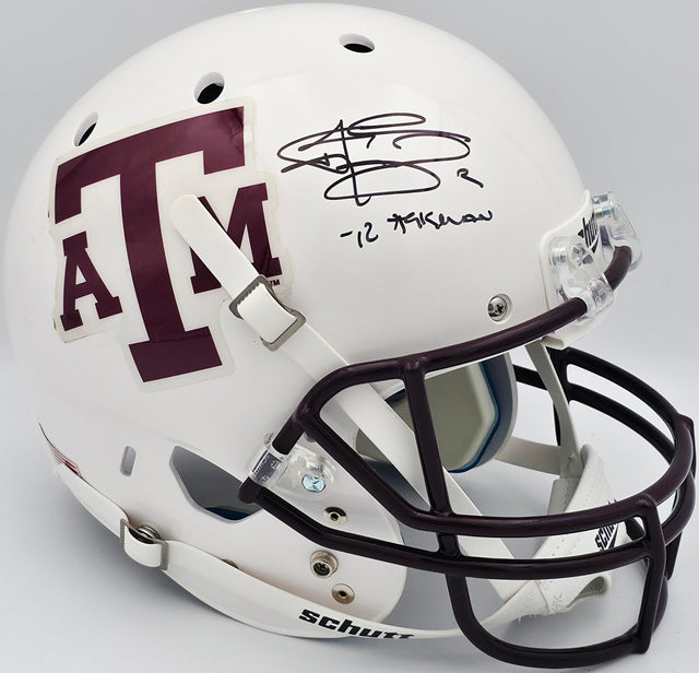 Own a piece of Texas A&M Aggies history with this stunning White Full Size Replica Helmet, hand-signed by legendary quarterback Johnny Manziel. A standout centerpiece for any collection, this helmet is personally inscribed with "12 Heisman", commemorating Manziel’s 2012 Heisman Trophy victory—the first in Texas A&M history. Whether you're a die-hard Aggies fan or a memorabilia enthusiast, this autographed helmet is a must-have tribute to one of college football’s most electric playmakers.