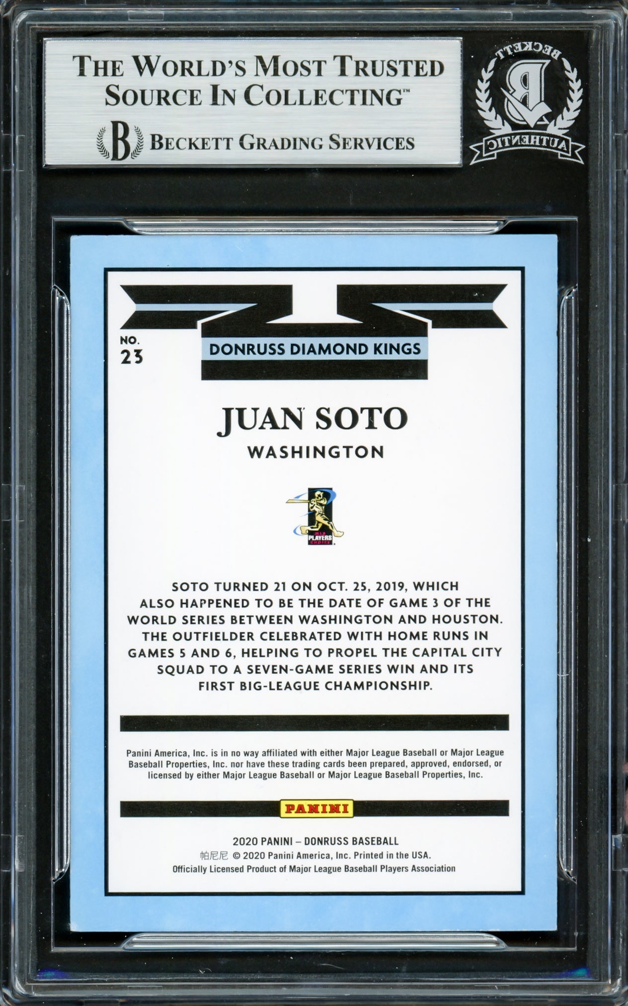 Juan Soto Autographed 2020 Donruss Diamond Kings Card #23 New York Mets Beckett BAS Stock #228031 is backordered and will ship as soon as it is back in stock.