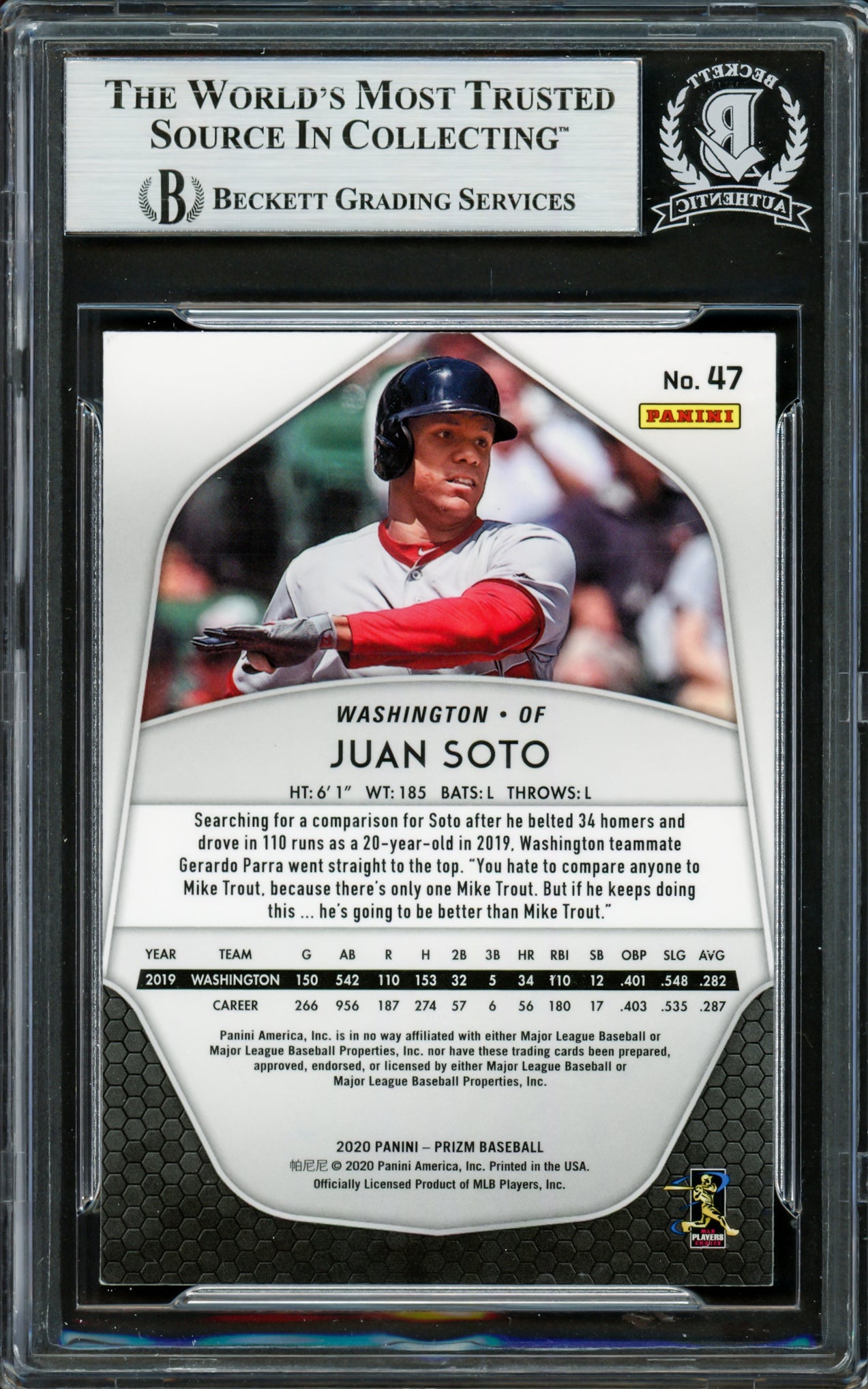 Juan Soto Autographed 2020 Panini Prizm Card #47 New York Mets Beckett BAS Stock #228034