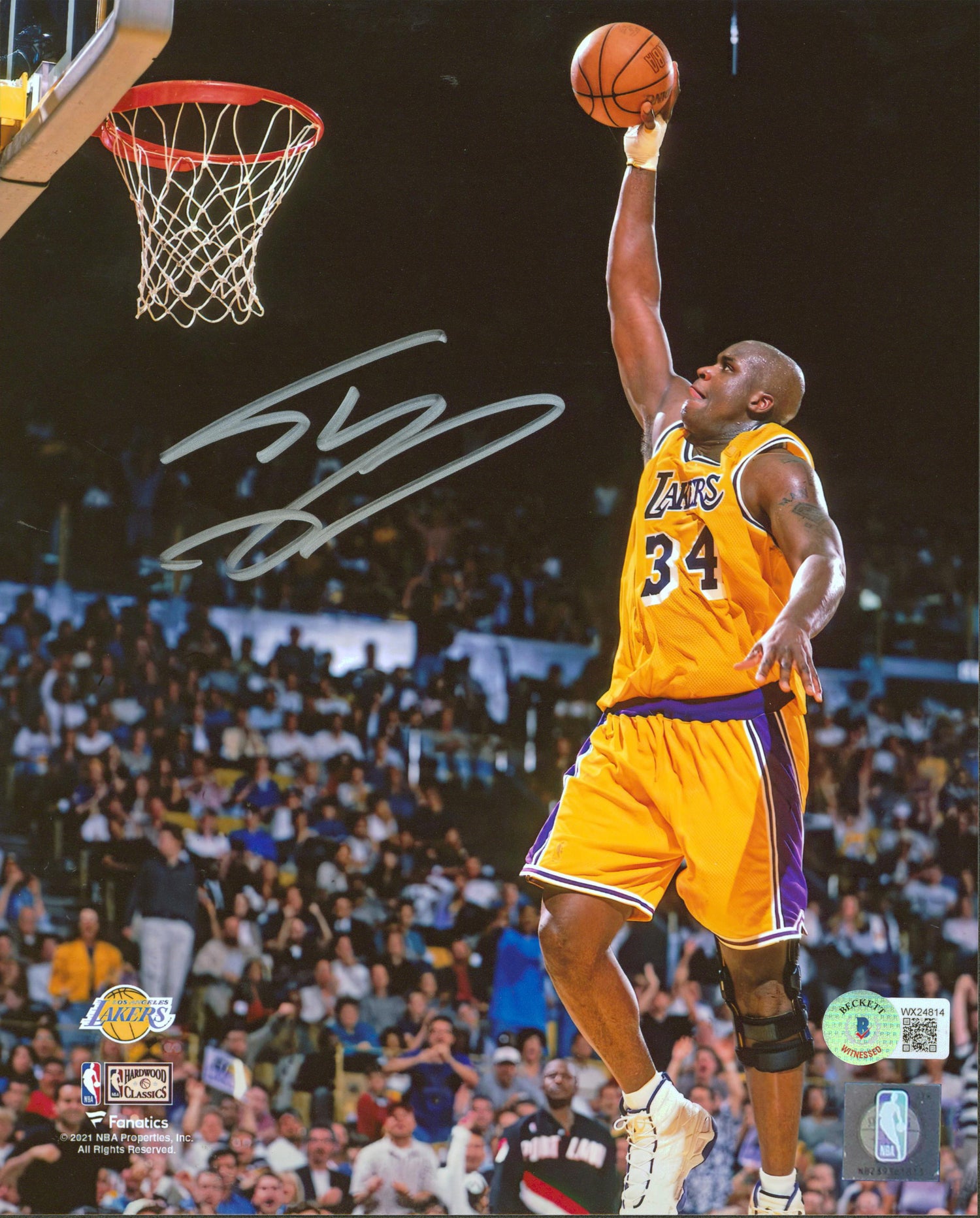 Lakers Shaquille O'Neal Signed 8x10 Vertical Dunk Photo Vs Blazers BAS Witness