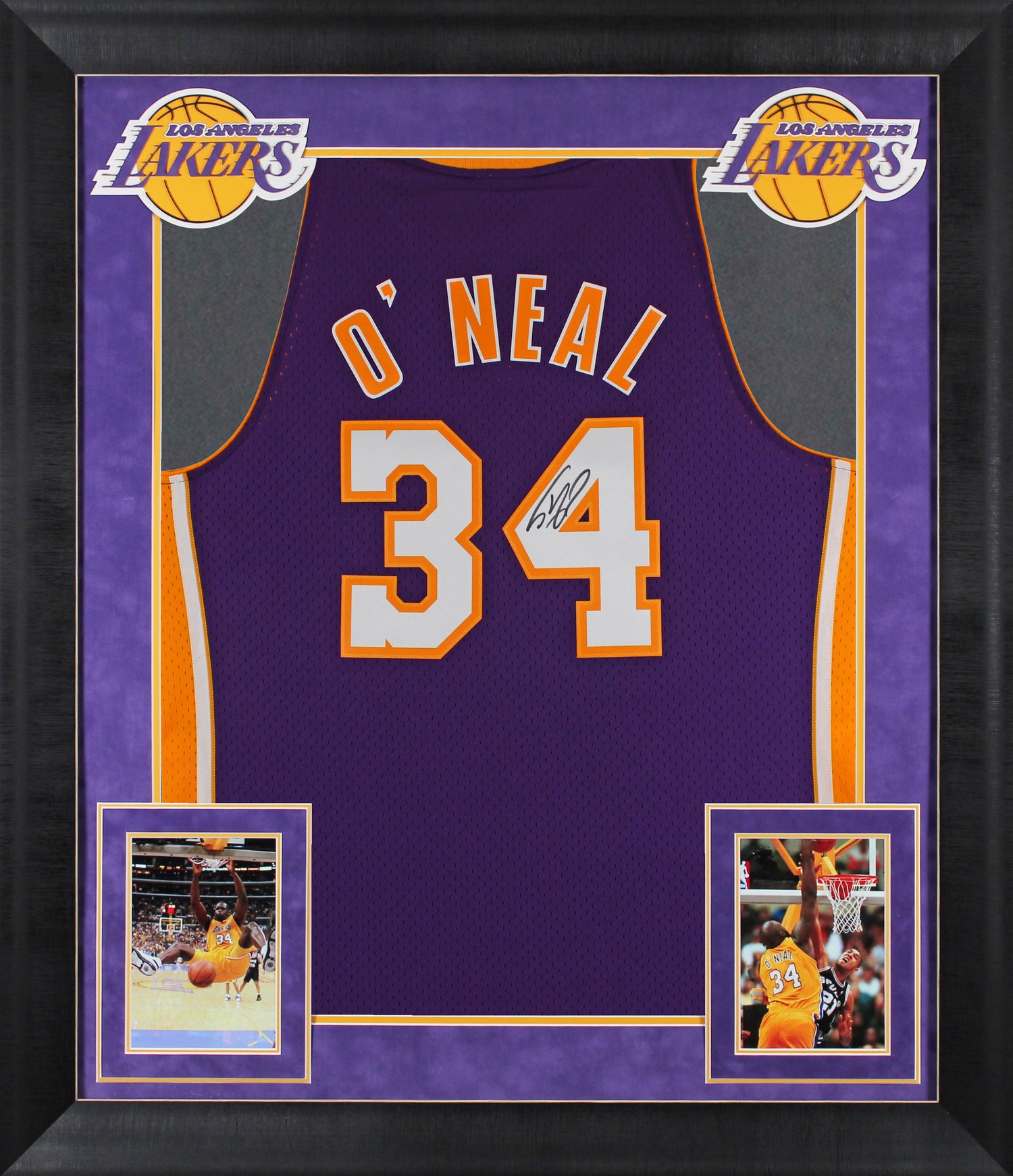 Lakers Shaquille O'Neal Signed Purple M&N 99-00 HWC Swingman Framed Jersey BAS W