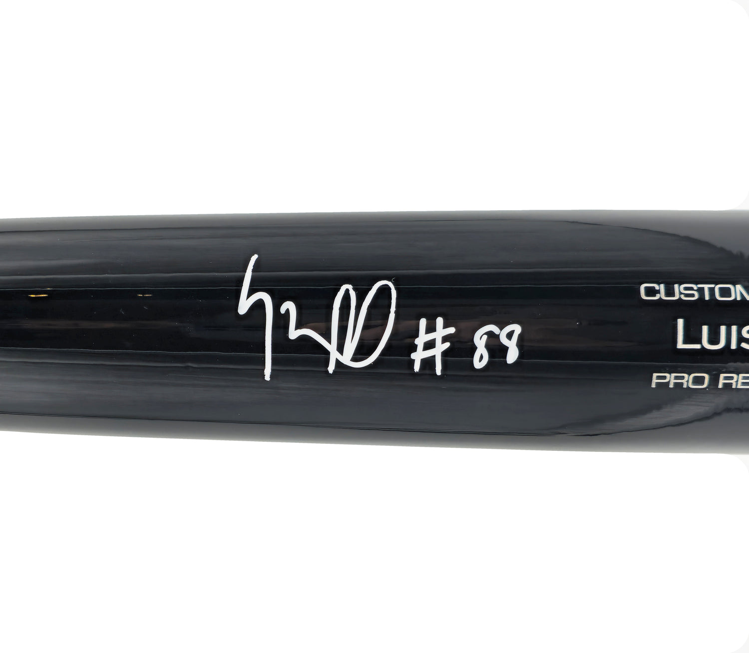 Elevate your memorabilia collection with this Black & Gray Victus Player Model Baseball Bat, personally hand-signed by Luis Robert Jr. A rising star in Major League Baseball, Luis Robert Jr. has made a significant impact with his power, speed, and defensive skills, making this signed bat a must-have for fans and collectors alike.