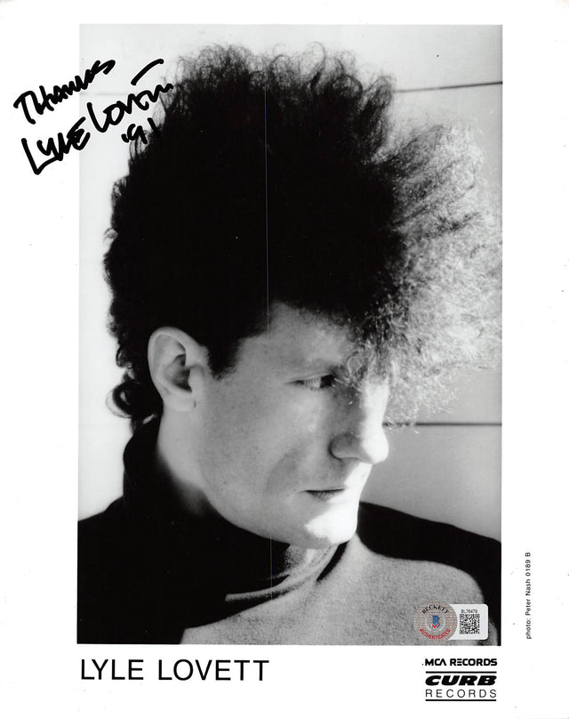 Celebrate the legacy of Lyle Lovett with this 100% authentic autographed photo. Whether you're a devoted fan of his legendary music career or seeking a rare collectible, this signed piece is a fantastic addition to any collection. Verify its authenticity anytime on the Beckett Authentication Services website.