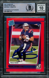 Mac Jones Autographed 2021 Donruss Rated Rookie Red Press Proof Rookie Card #255 New England Patriots Auto Grade Gem Mint 10 Beckett BAS #14867219