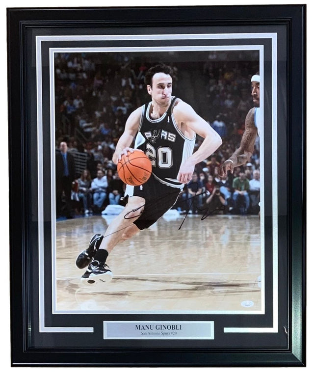 Manu Ginobili Signed Framed 16x20 San Antonio Spurs Photo JSA