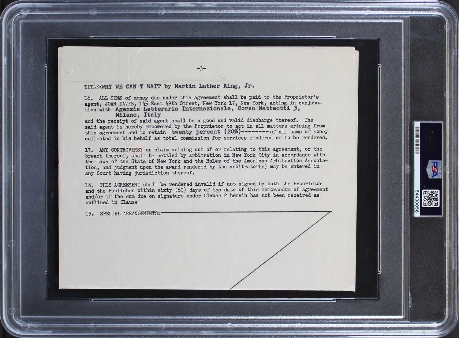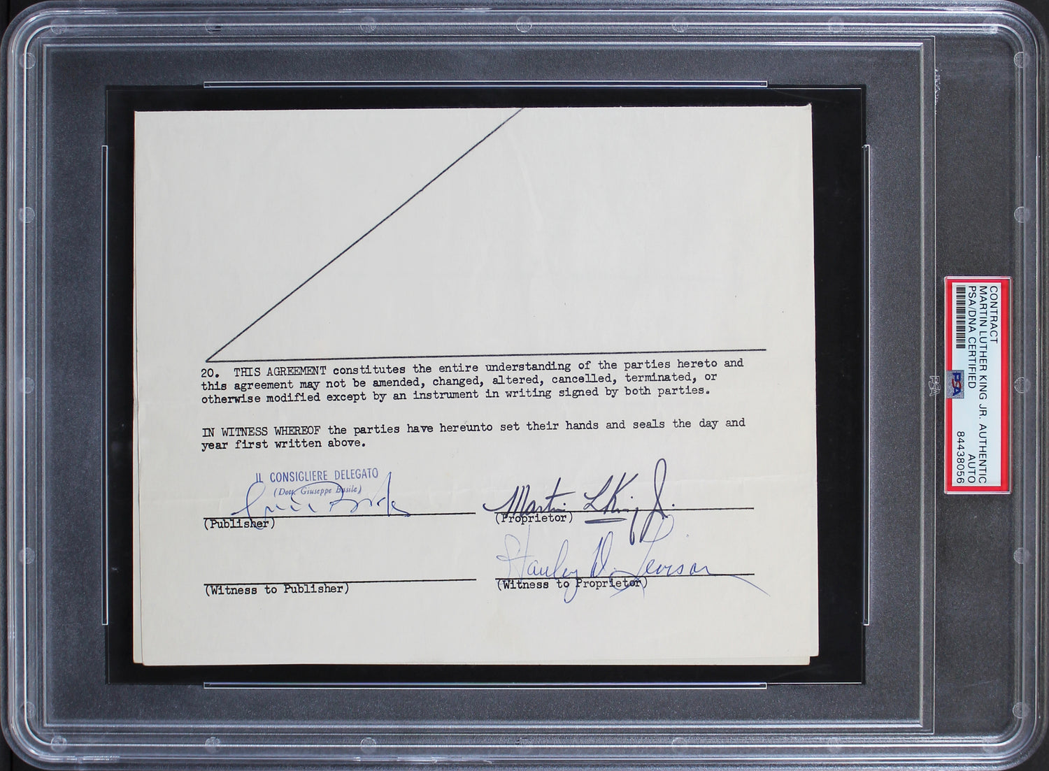 Martin Luther King Jr. Authentic Signed 7x8.5 Partial Contract PSA/DNA Slabbed