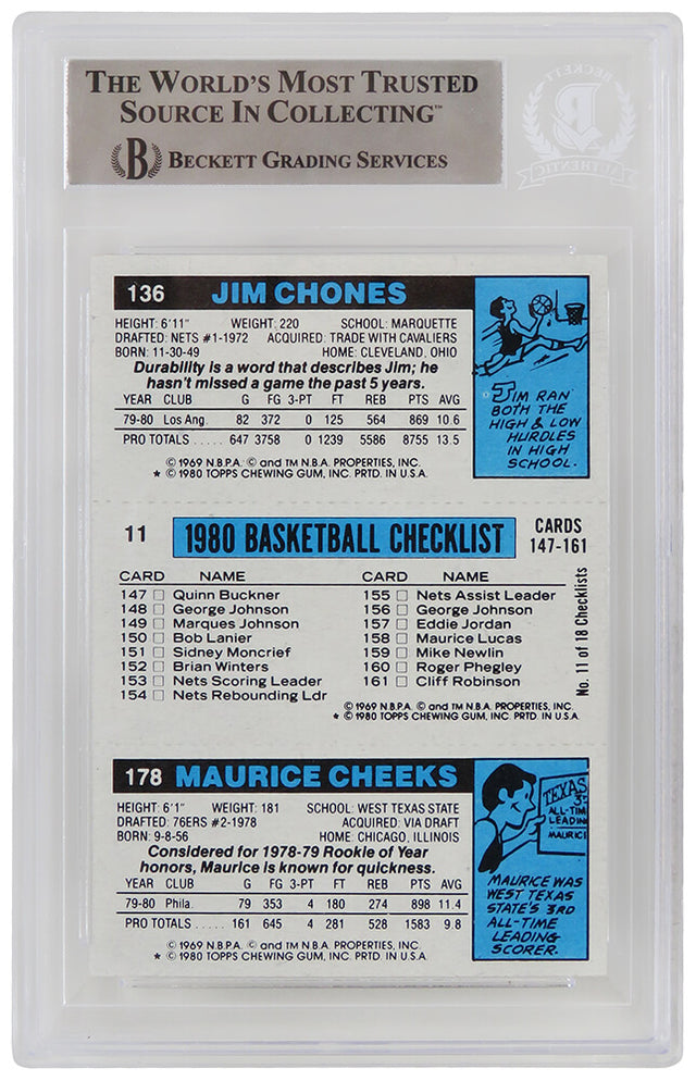 This officially signed card is professionally authenticated and encapsulated by Beckett Authentication Services (BAS), one of the most trusted names in the memorabilia industry. The card is listed as #178 in the 1980 Topps basketball series but also appears as #154 on the 1980–82 Topps checklist, making it a unique collector’s piece from a landmark set.