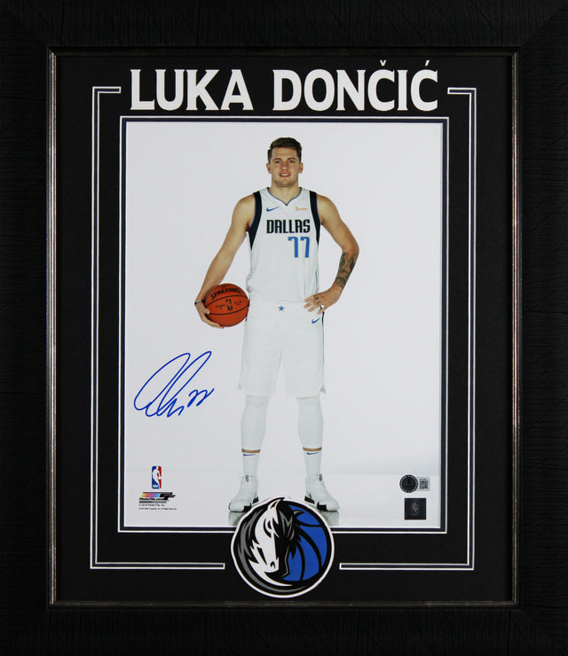 Celebrate the rising legacy of a modern NBA superstar with this Autographed 11x14 Framed Photo personally signed by Luka Dončić of the Dallas Mavericks. A fan-favorite known for his clutch performances and record-breaking feats, Luka is redefining the future of basketball—making this piece a must-have collectible for Mavs fans and sports memorabilia enthusiasts alike. This signed photo is not only a striking display of player pride but also a validated investment in the rising career of one of the game’s greats.