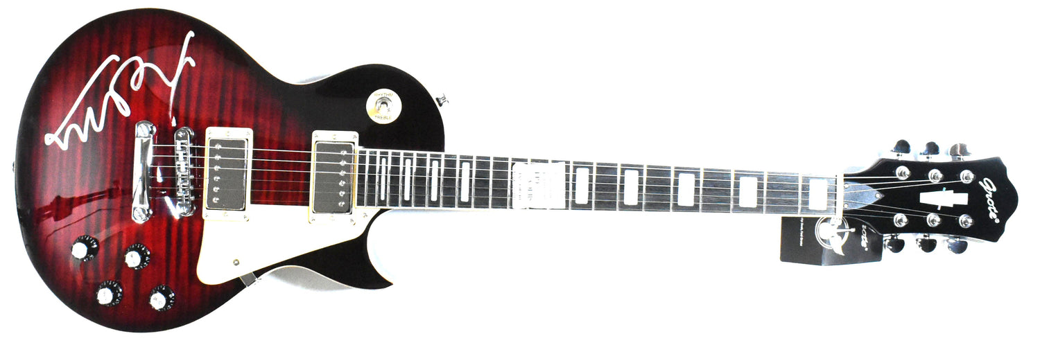 - Signed on a red Grote guitar, adding a bold and vibrant display piece to any collection