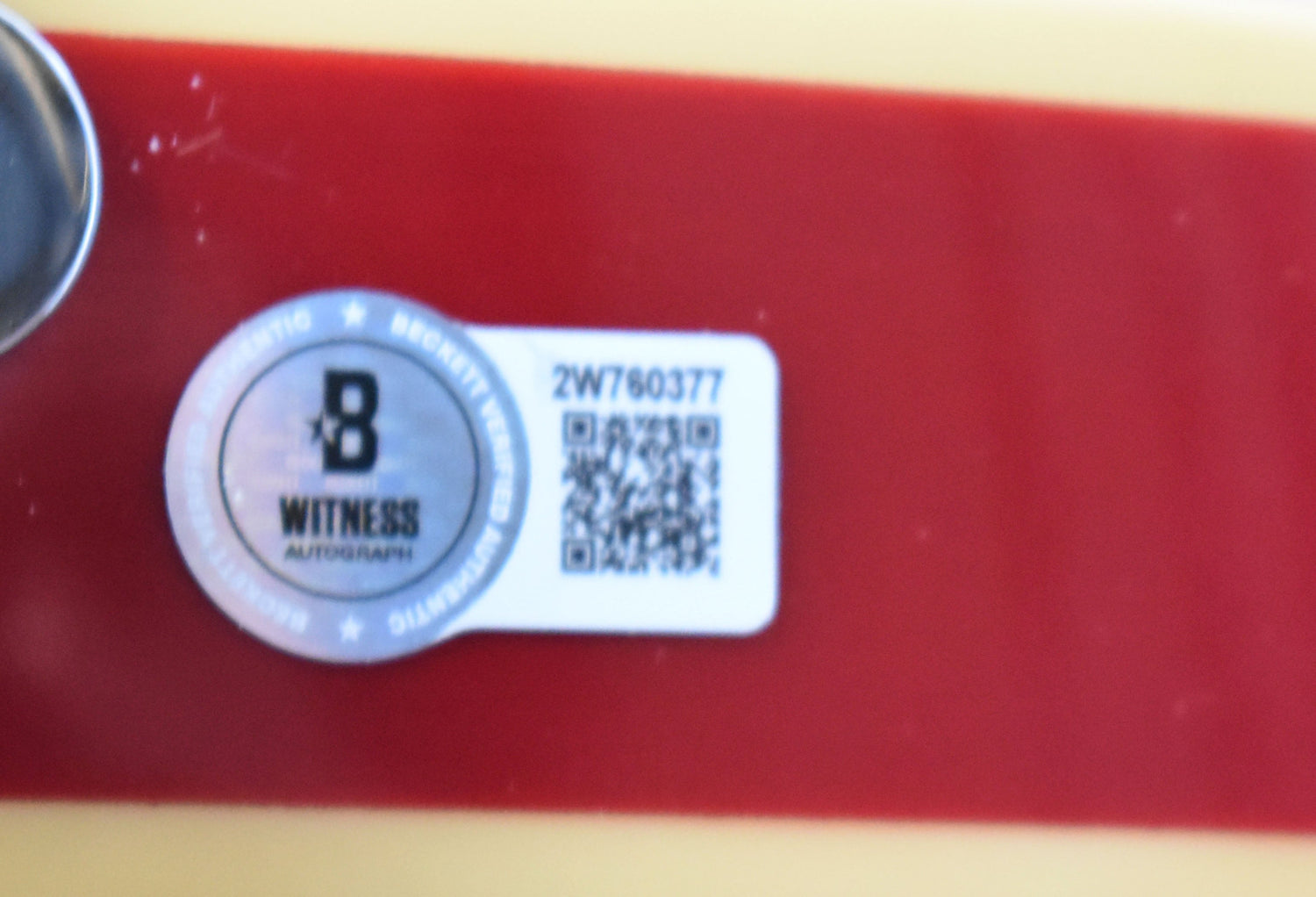 - Authentic Michael J. Fox signature – hand-signed on a vibrant Red Grote Guitar