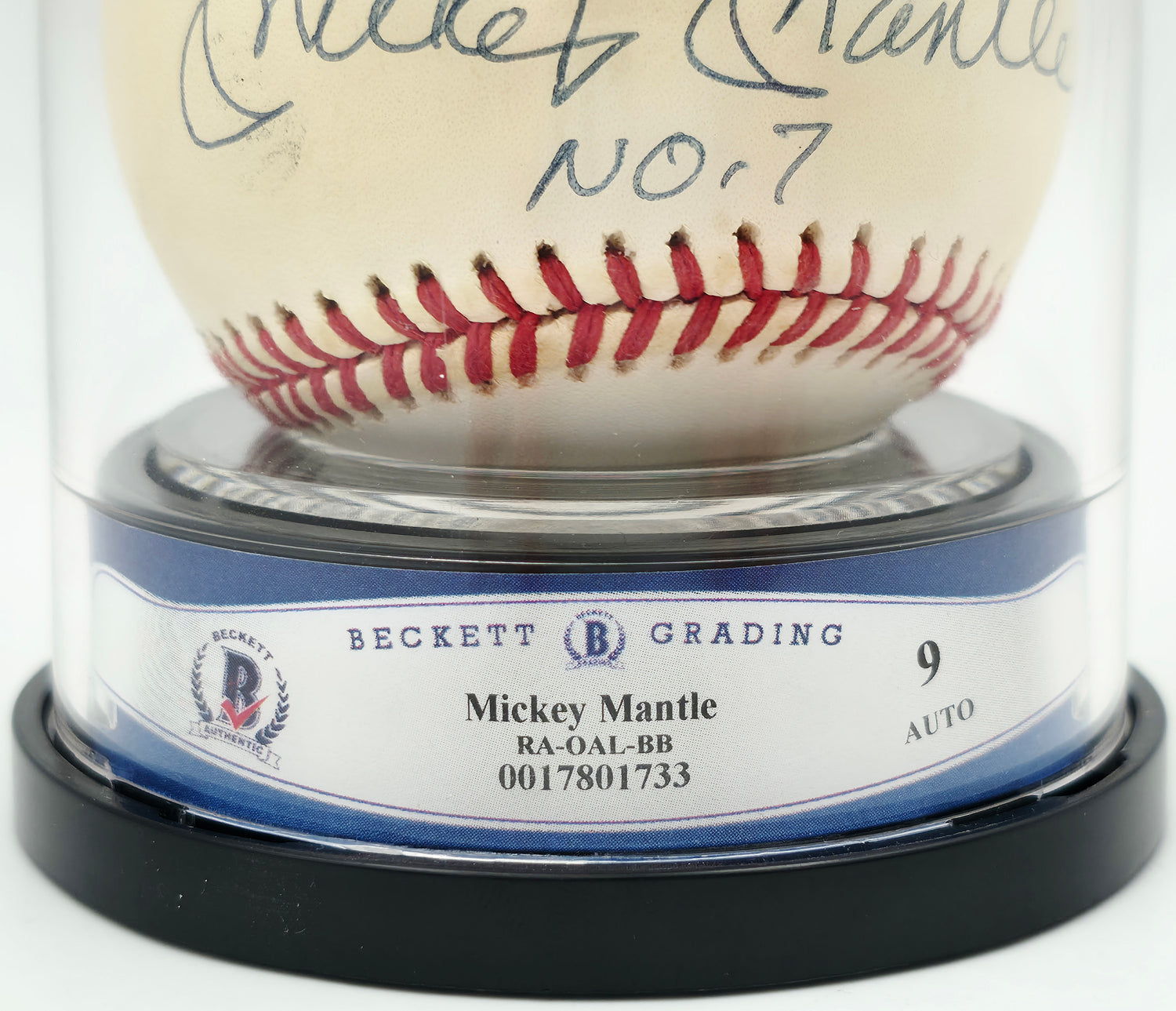 Mickey Mantle Autographed Official AL Baseball New York Yankees Auto Grade Mint 9 "No 7." Beckett BAS #17801733 is backordered and will ship as soon as it is back in stock.