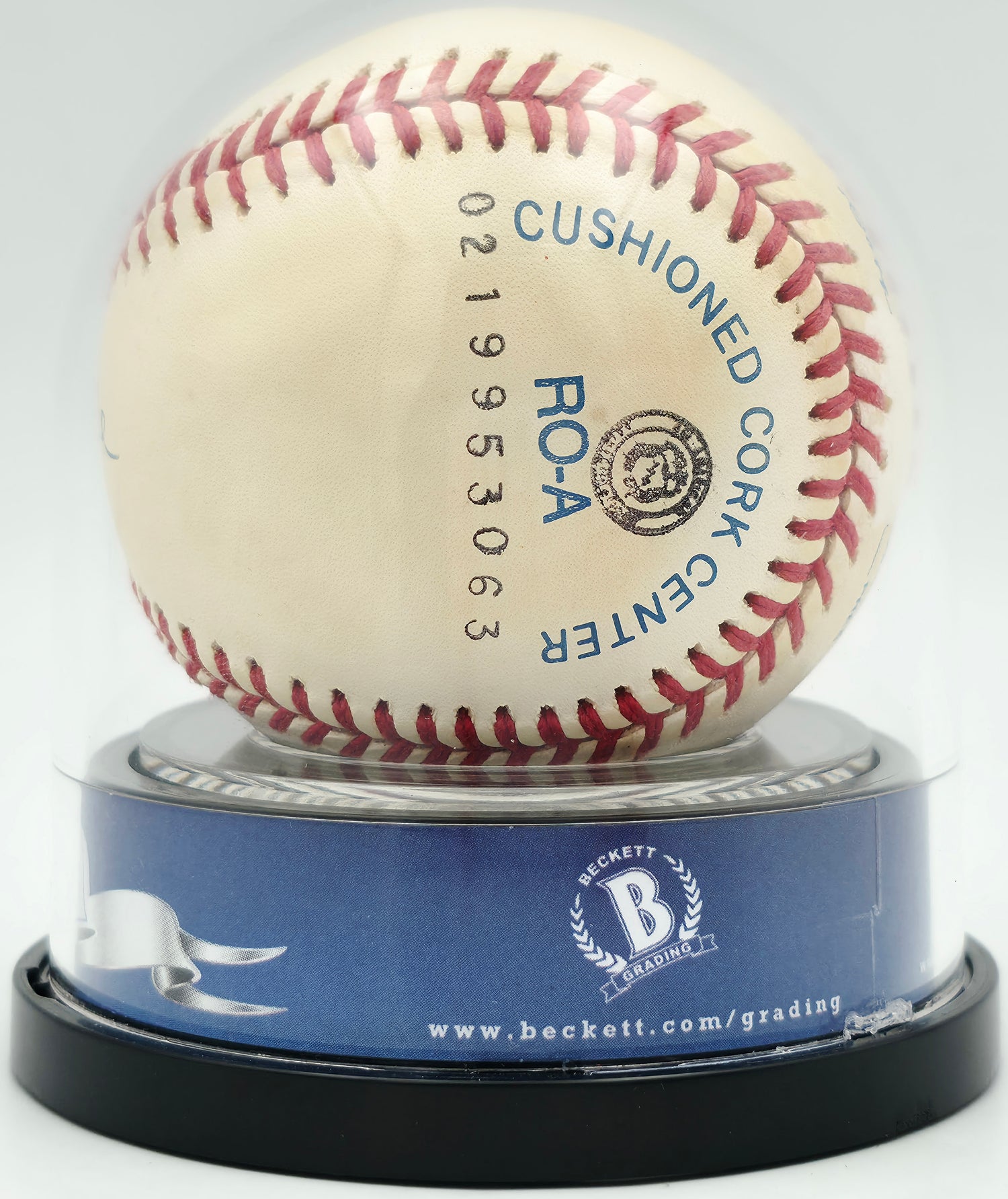 This signed baseball has been professionally authenticated and encapsulated by Beckett Authentication Services (BAS), ensuring long-term preservation and peace of mind for collectors. The signature has received a grading of Mint 9 from Beckett, indicating exceptional quality and sharpness, making it a standout piece in any collection. Please note, there is a tear on the "American League" stamp as shown in the product images — a minor flaw that does not detract from the remarkable signature or the ball's authenticity.
